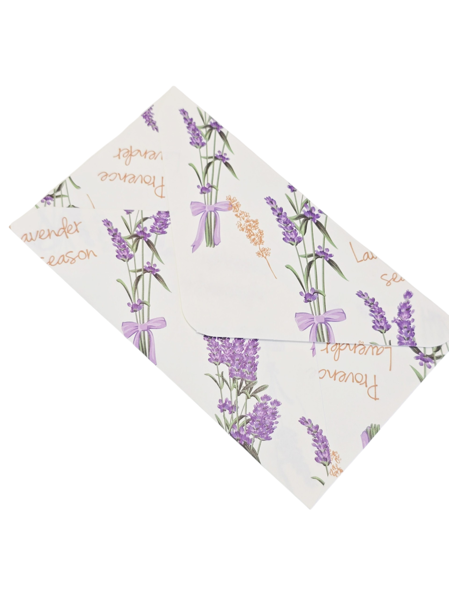 Dekoratyvinis vokas "Levandos" tinka laiškeliams arba pinigams dėti.