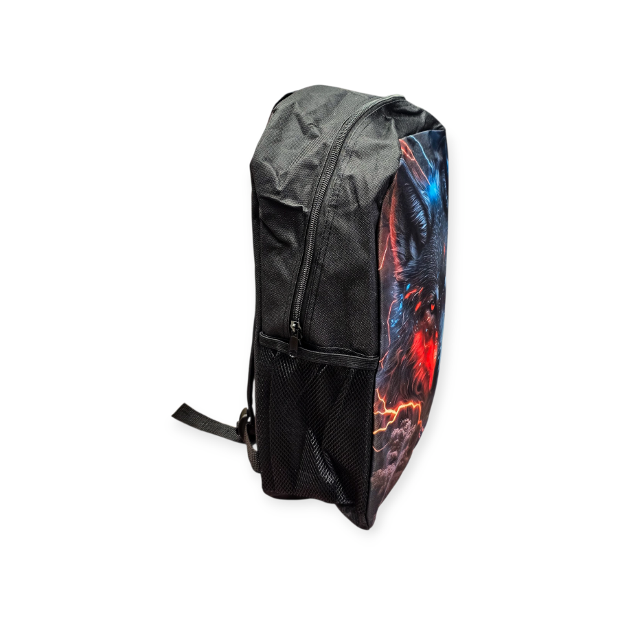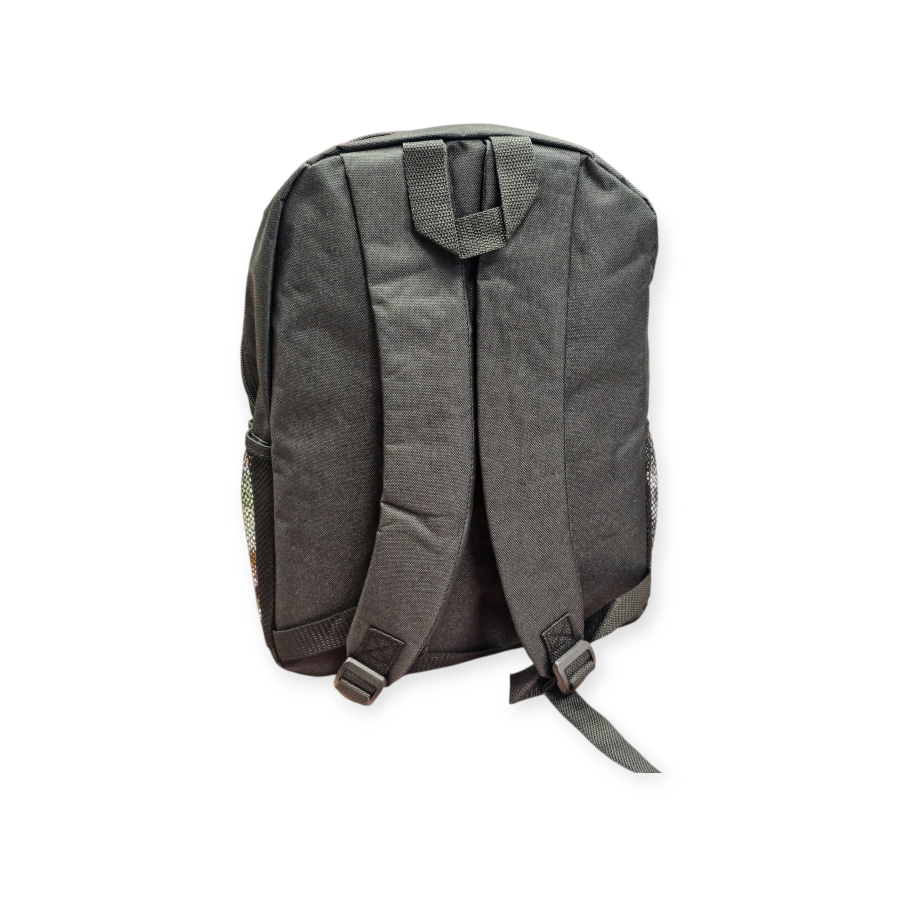 Vienas skyrius, nešimo rankena, reguliuojamos petnešos, šonuose dvi tinklinės kišenėlės.