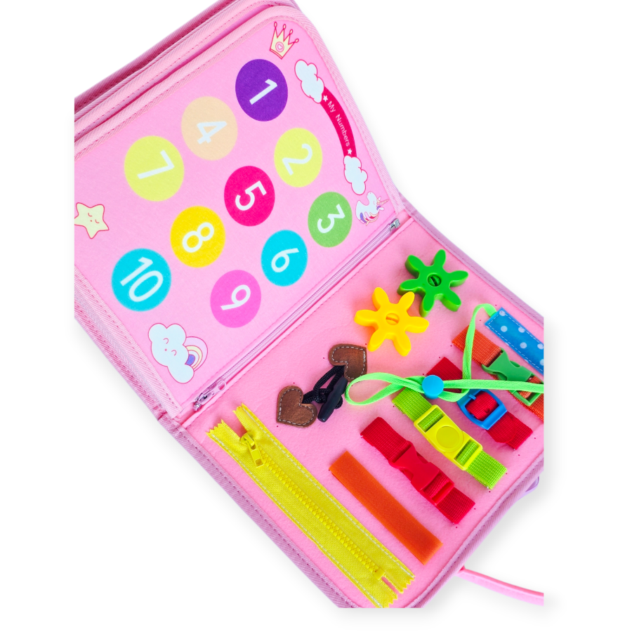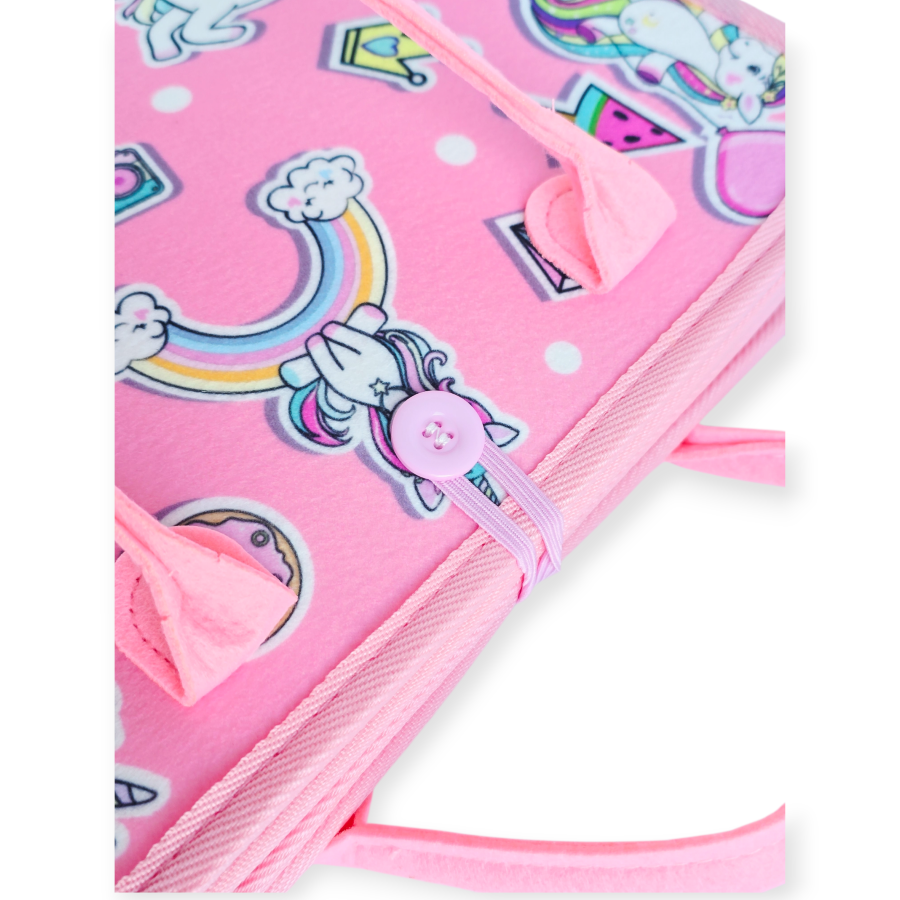 Pristatome originalią, lavinančią montessori veiklos knygelę iš veltinio su vienaragių motyvais, sukurtą specialiai vaikams nuo 3 metų amžiaus.