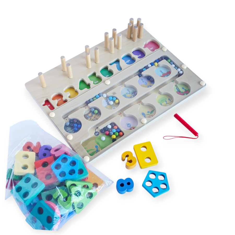 Magnetinis labirintas, geometrinės figūros ir skaičiai viename rinkinyje 30 × 22,5 cm – viena lenta, daug galimybių mokytis ir žaisti.