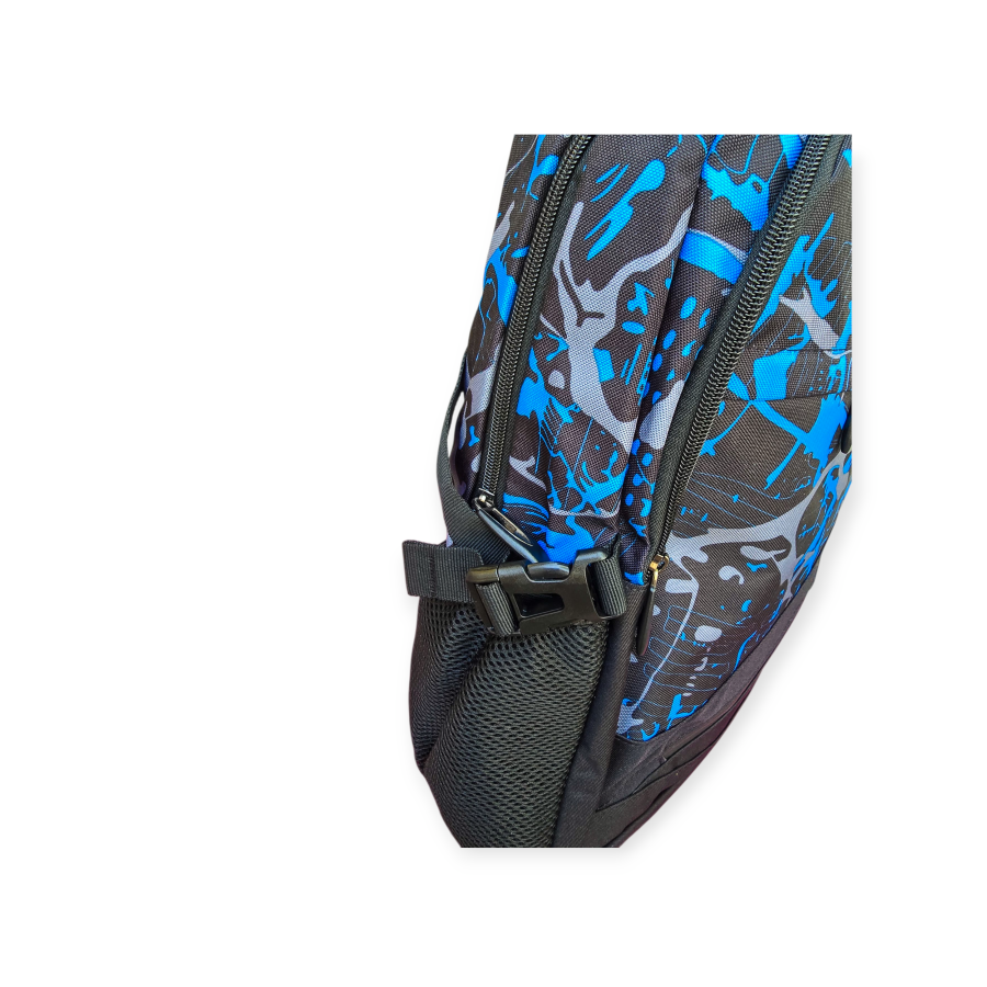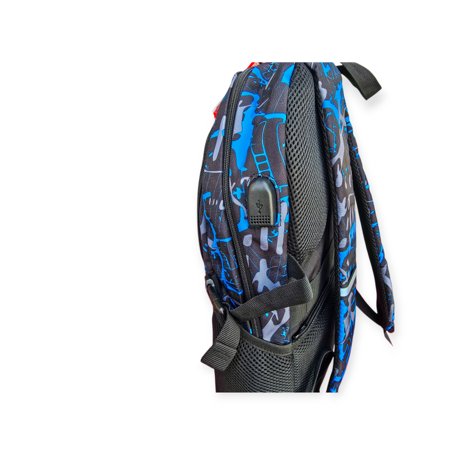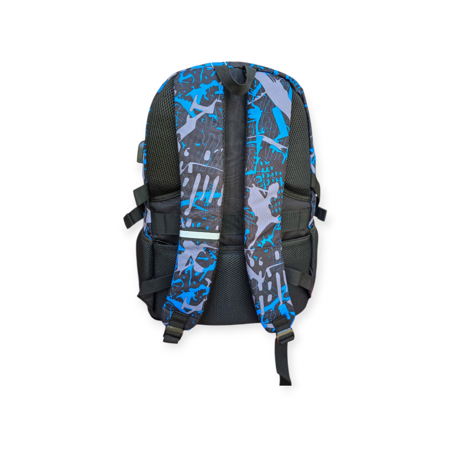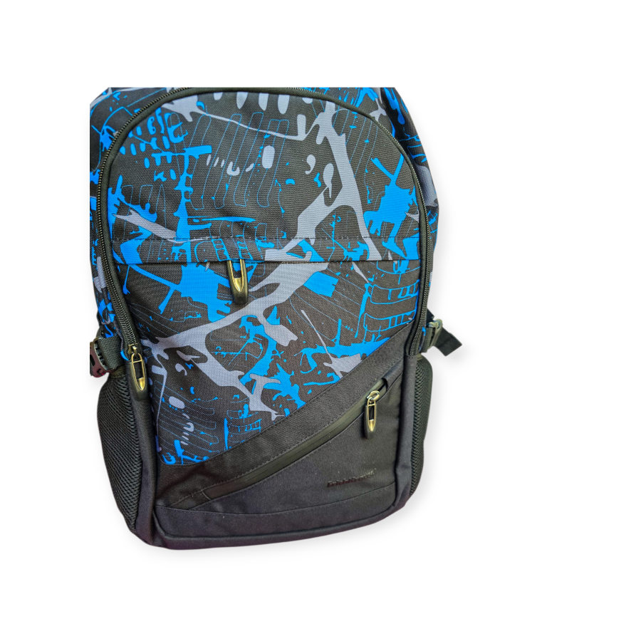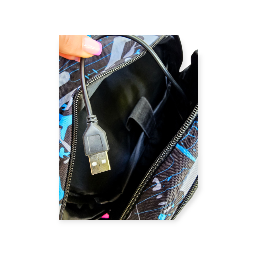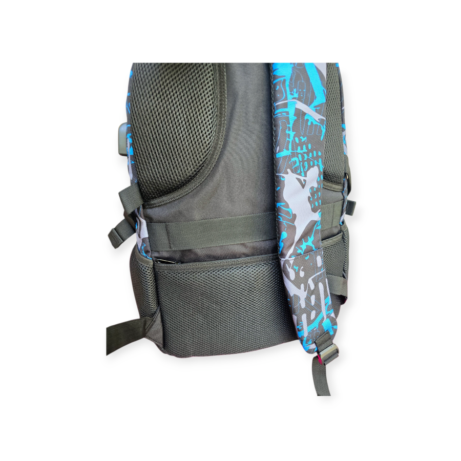 Ergonomiška nugara, plačios paminkštintos reguliuojamos petnešos, yra pakabinimo rankena, du didesni skyreliai ir du mažesni skyreliai smulkiems daiktams priekyje, vienas nugaroje mažesnis skyrelis smulkiems daiktams, šonuose dvi tinklinės kišenėlės. Yra USB laidas.