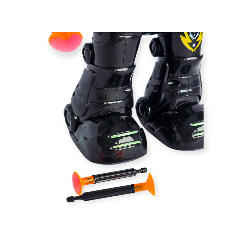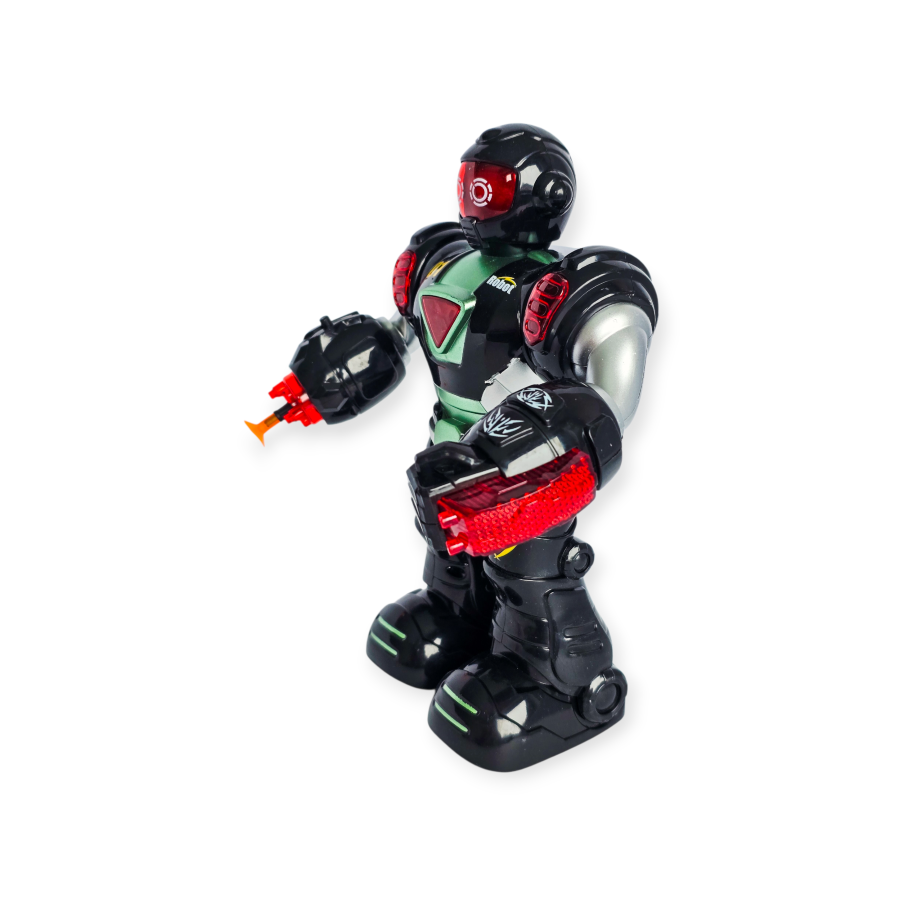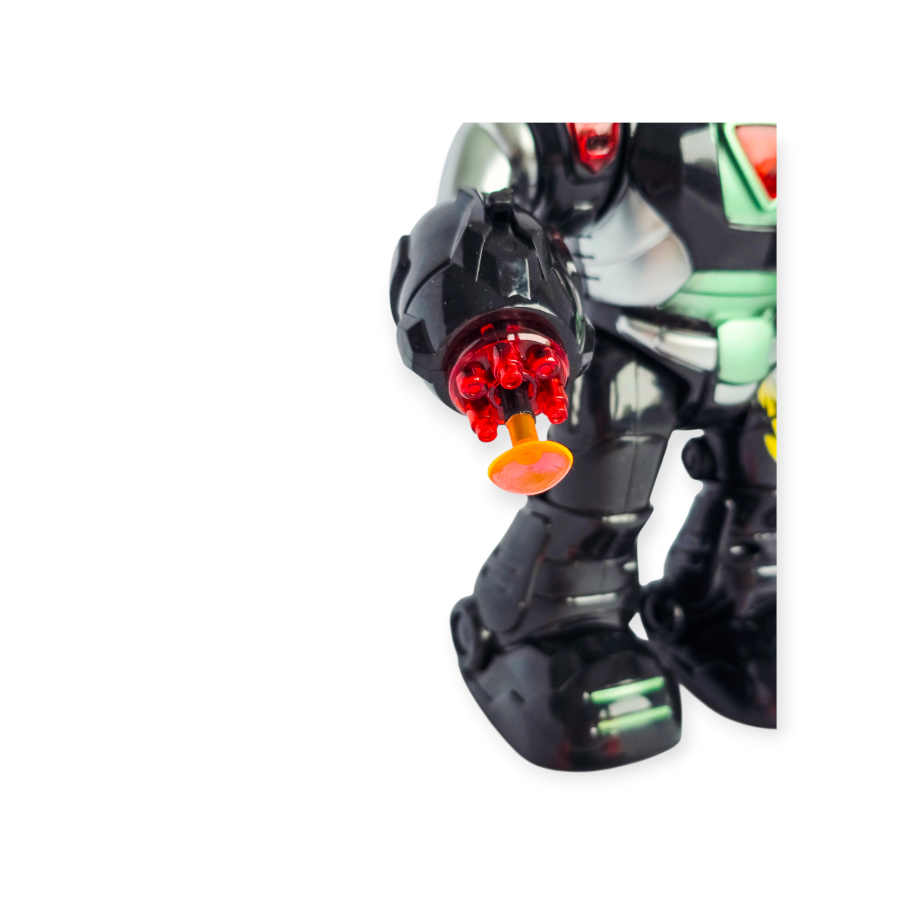 Žaislas vaikšto, skleidžia garsus, šviečia, šaudo strėlytėmis.