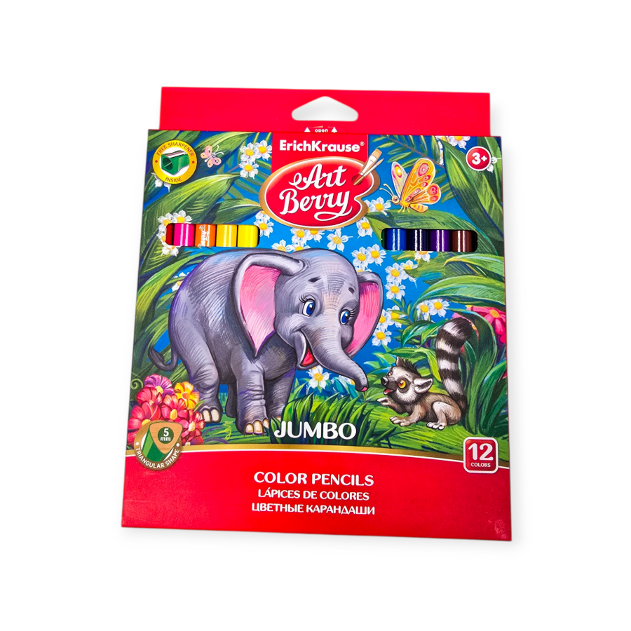 Rinkinyje yra 12 spalvų pieštukų, drožtukas