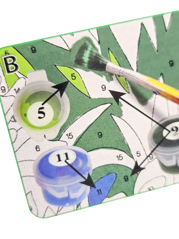 Dažus tepti pagal atitinkamus skaičiukus ant dažų ir paveikslėlio