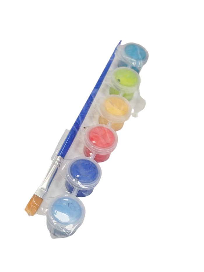 6 sunumeruotų spalvų dažų (akrilas) spalvų numerėliai matomi ant pakuotės priekyje